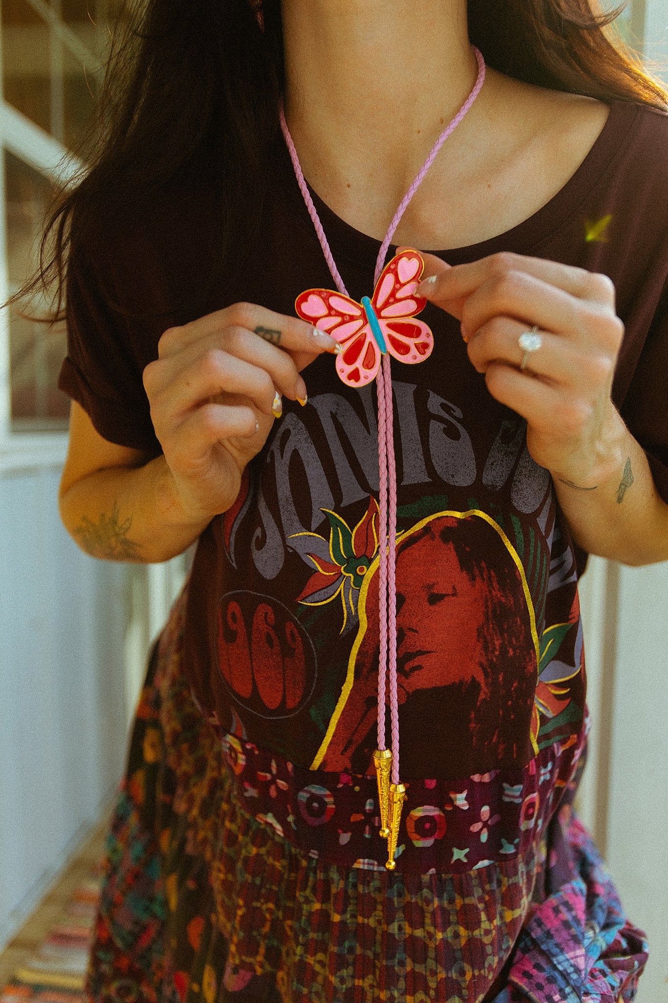 The bolo charm measures 7 x 5.5 cm and features soft enamel, decorative rhinestones and gold details.