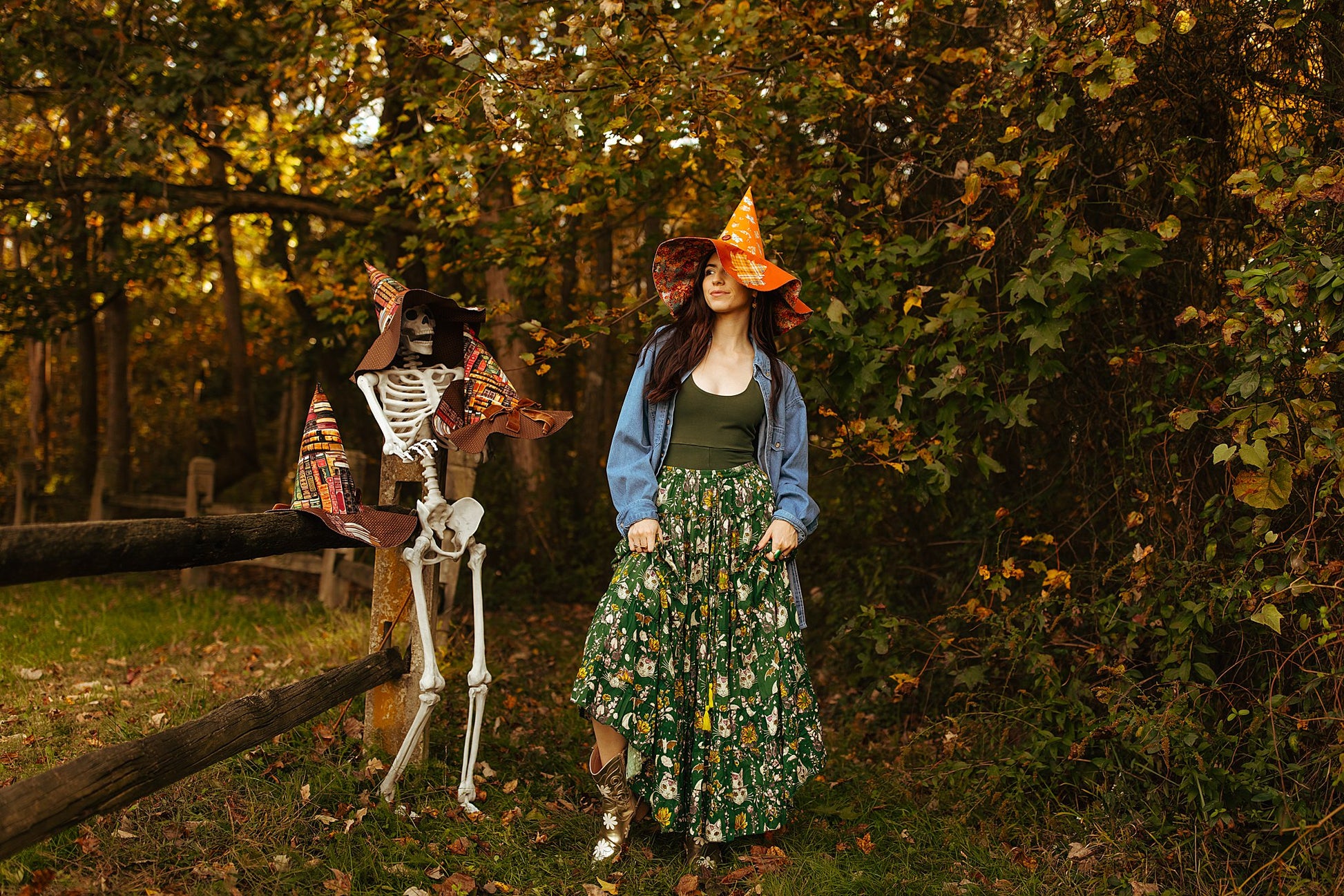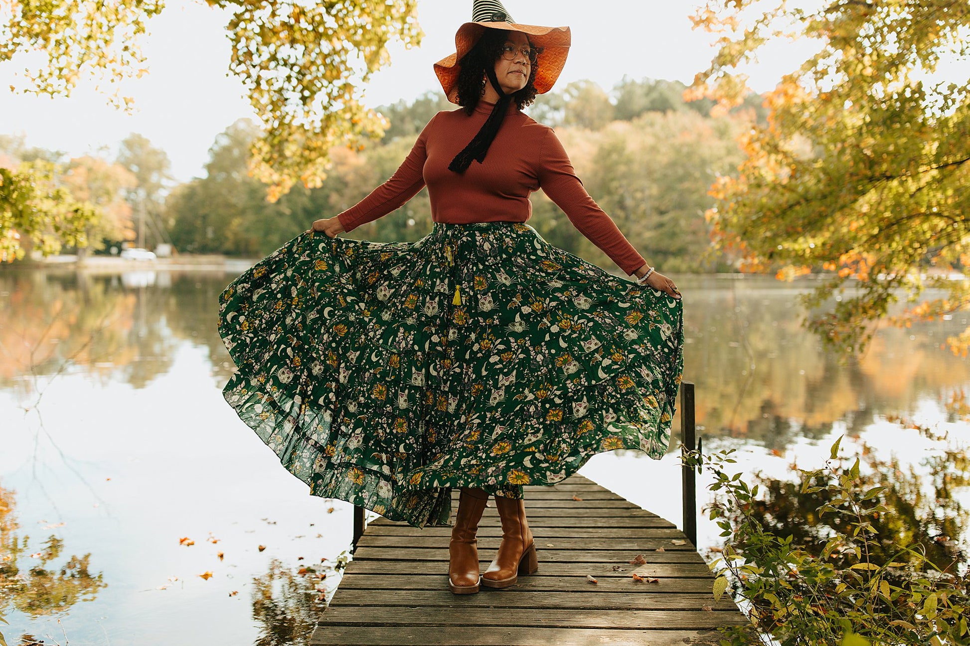 Celestial Cat Skirt Green