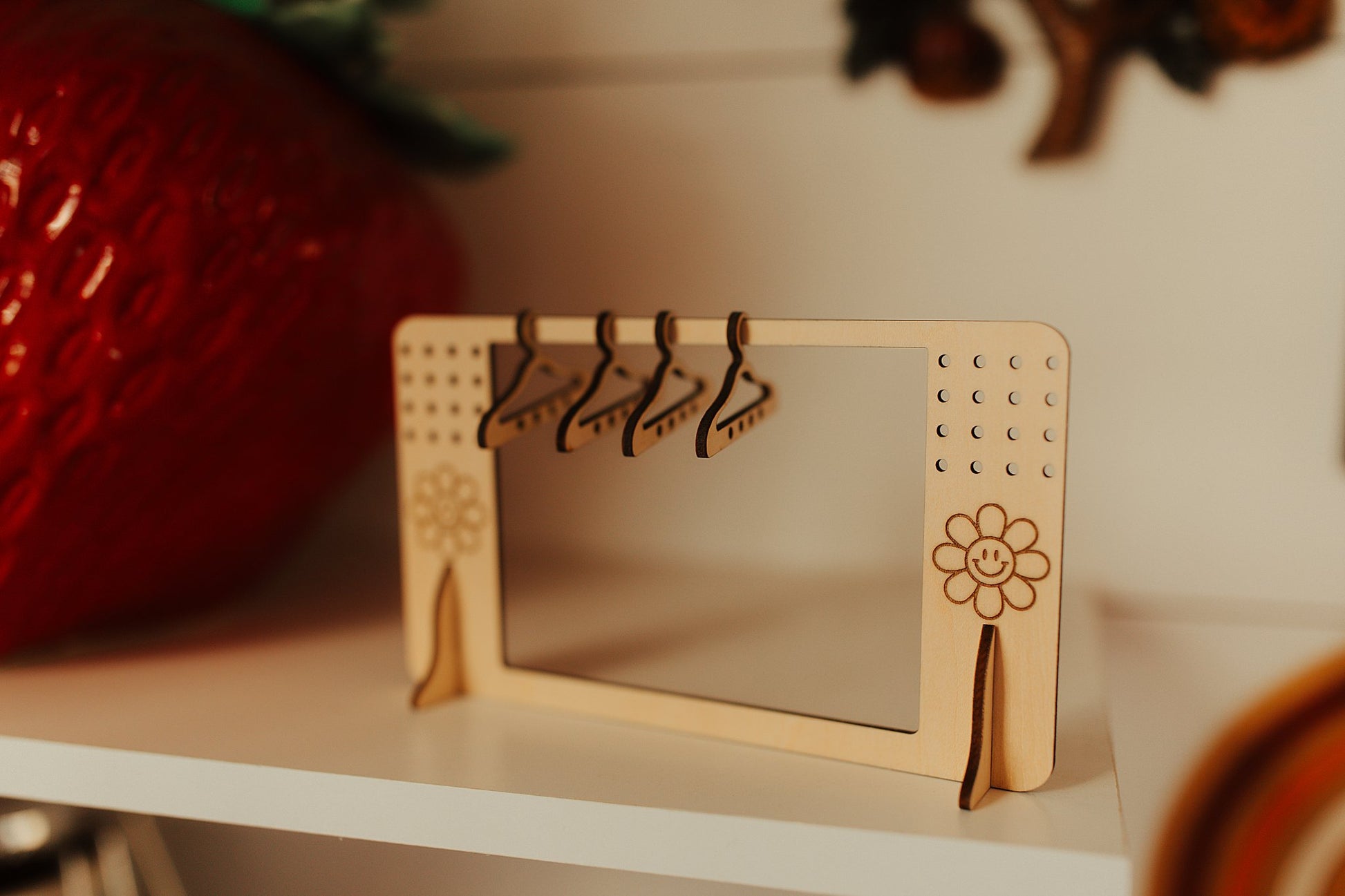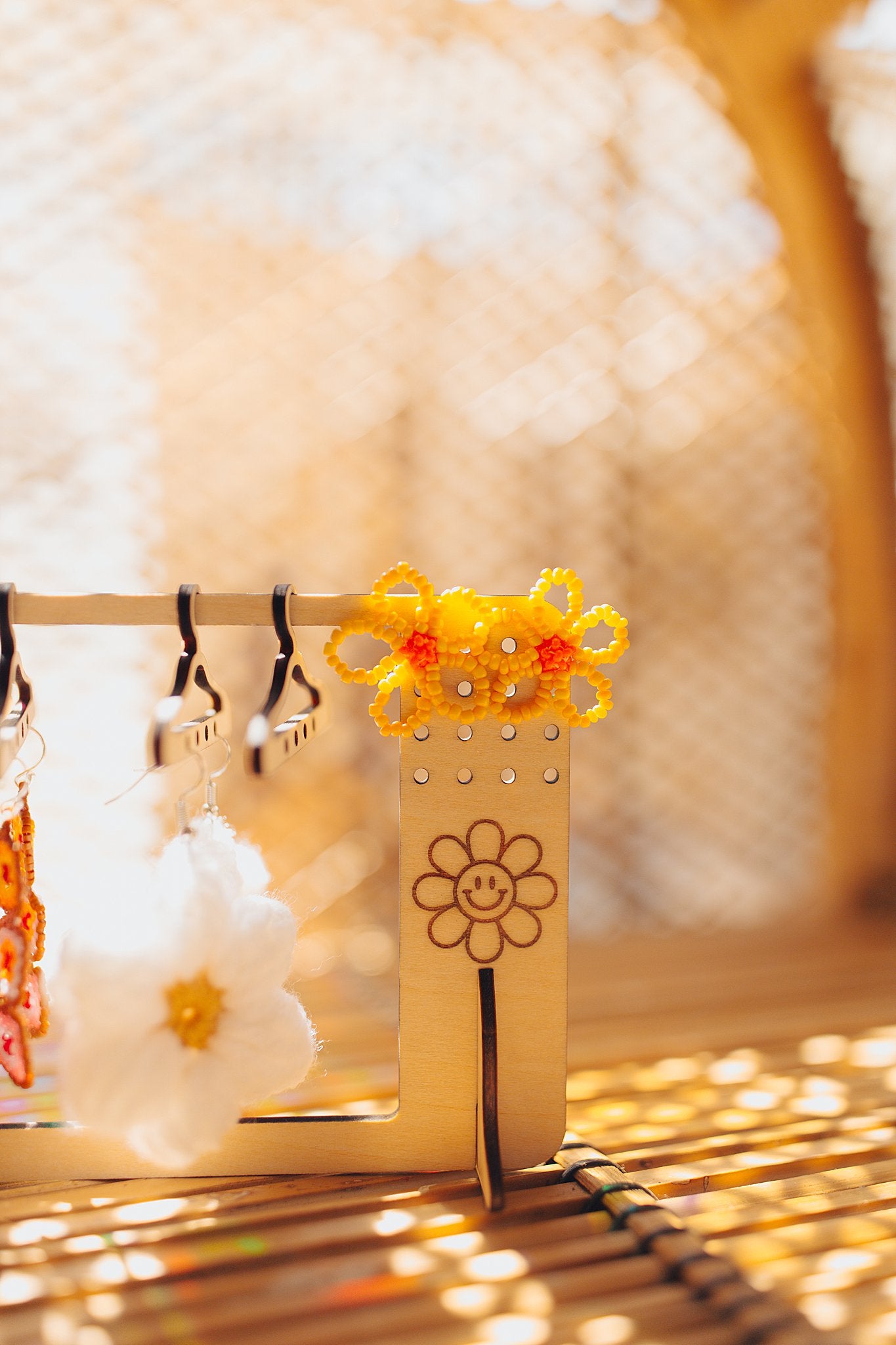 Our Eco-Friendly Wooden Earring Holder is designed to keep your jewelry organized while adding a touch of charm to your space. Crafted from sustainable wood, this compact yet functional display holds both dangle and stud earrings, making it easy to plan your weekly accessories in advance.