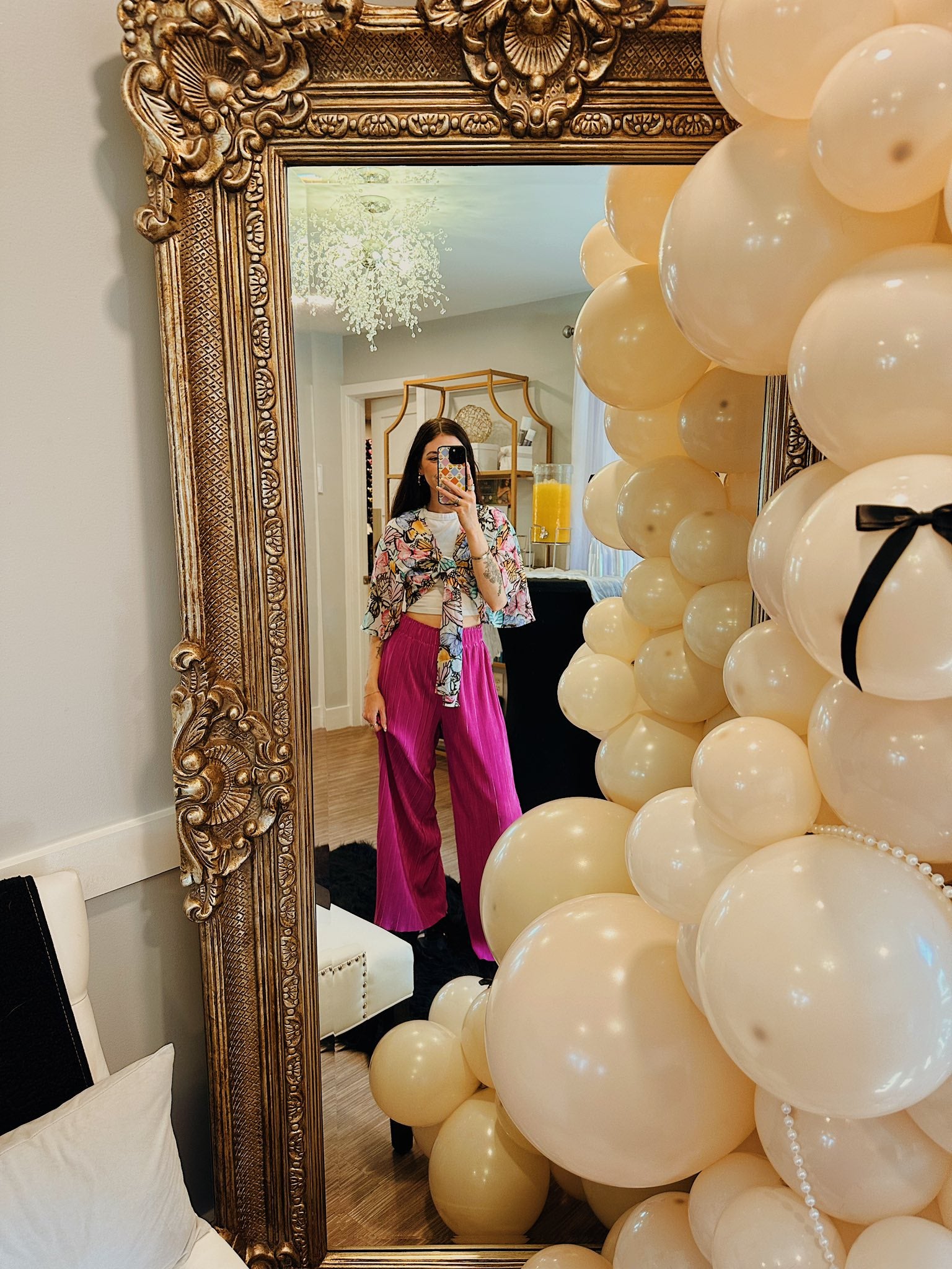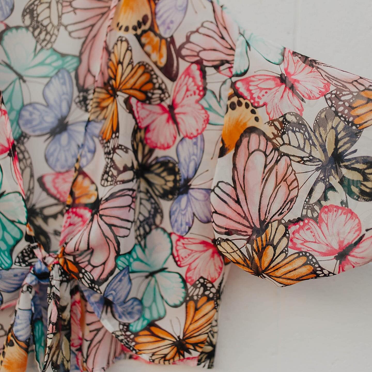 Effortlessly chic, our My Darling Valentina blouse has a lightweight woven construction and sheer fabric for that perfect breezy feel. With a stylish drop shoulder flutter sleeve and kimono fit, this blouse also features a functional front tie and scooped hem for a playful twist.
