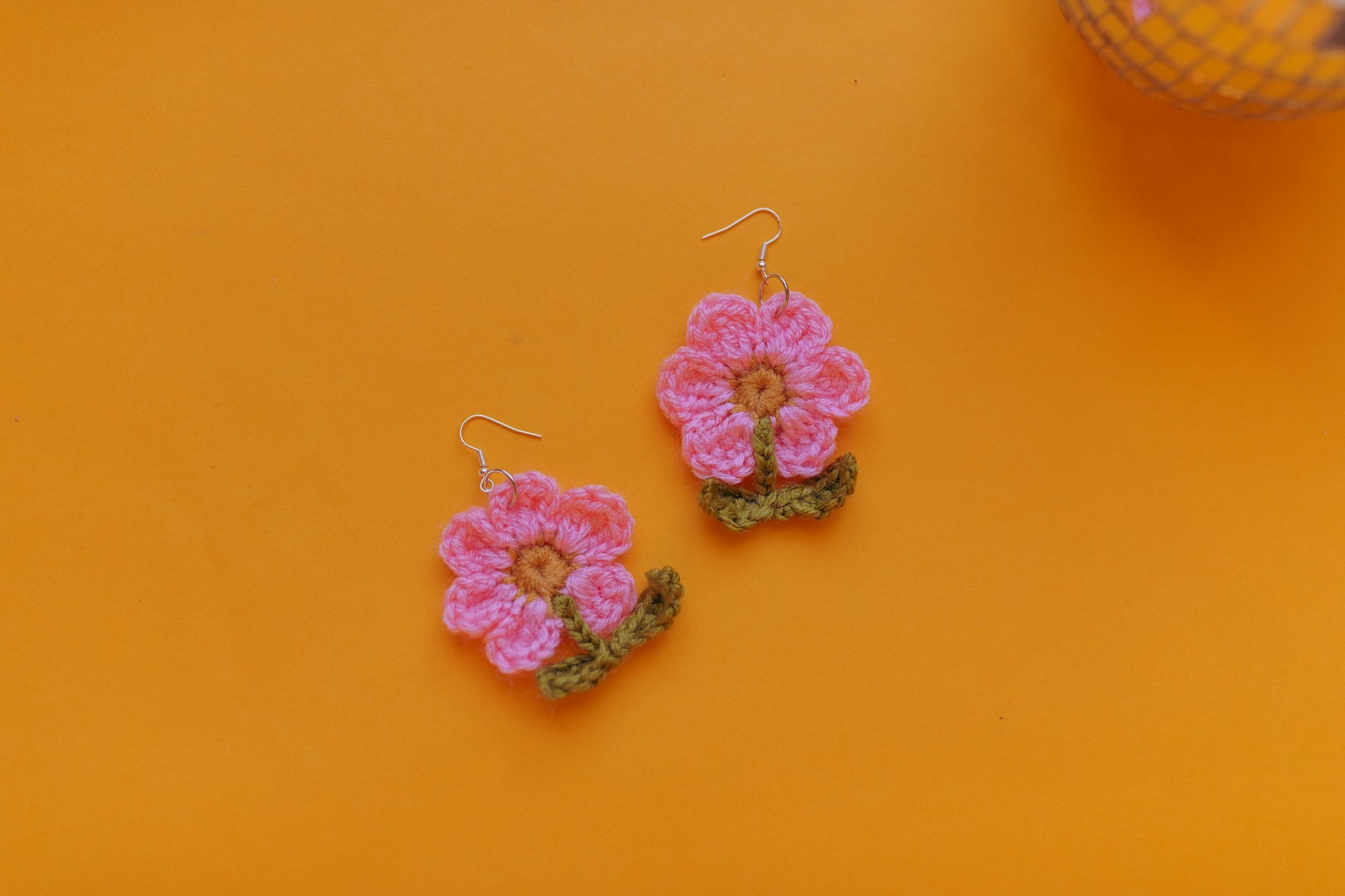 Pink crochet flowers with stems! The cutest earrings for Spring.