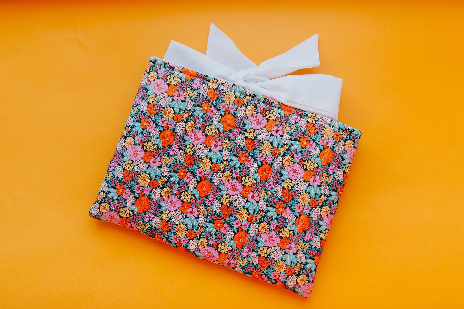 Handmade with love! This adorable quilted Bow Book Sleeve is the perfect companion for readers on the go! Designed to snugly fit books up to 8.5x10 inches, it keeps your favorite reads safe from scratches, creases, and spills. The charming bow detail adds a touch of coquette but also making it as stylish as it is practical.