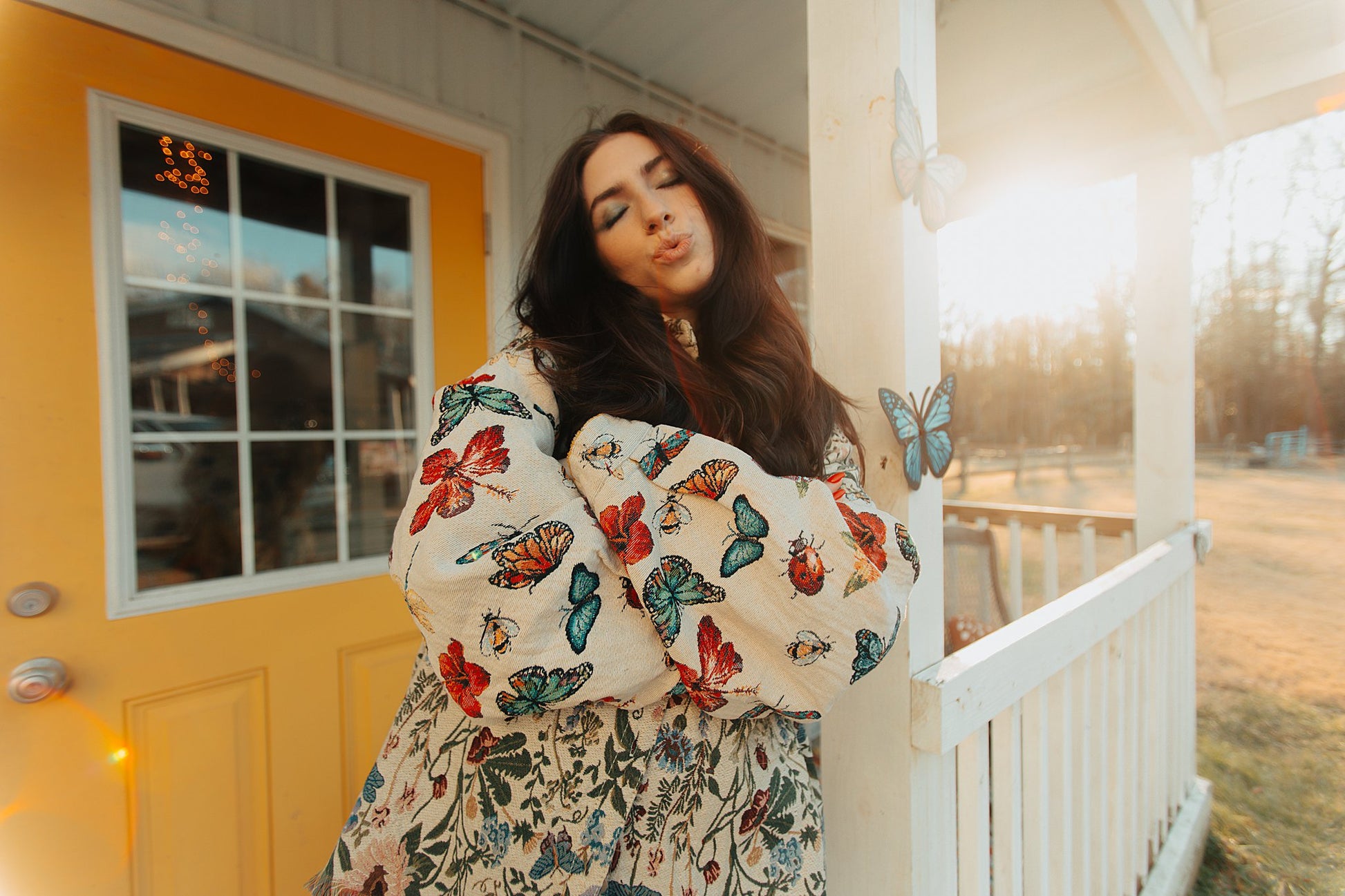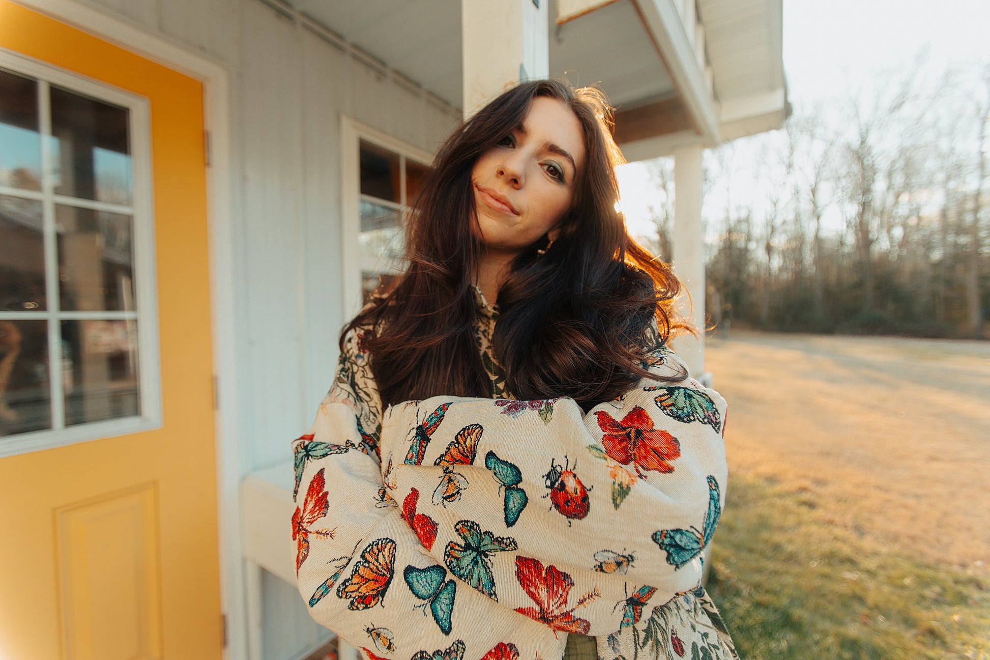 I'm in the medium for photos, but would go with the small! Very roomy and oversized. No need to size up. Two front pockets, no side pockets.