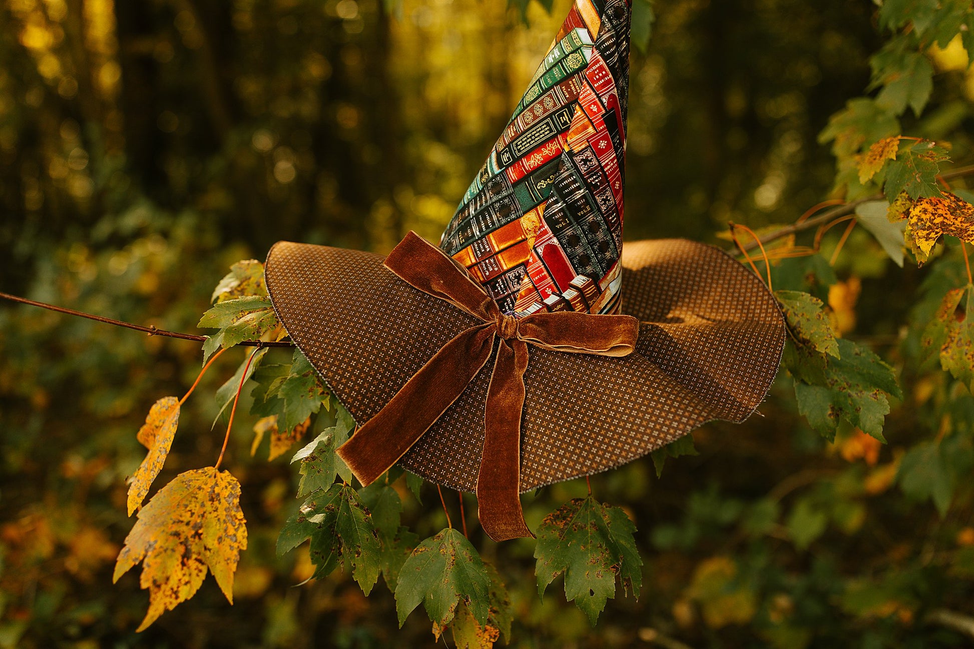 Celebrate spooky season with a witch hat! Handmade by me. Patchwork and buttons!
